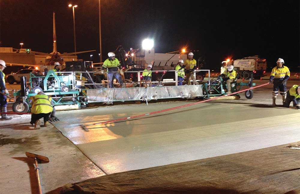 At the Sydney International Airport in Australia, a taxiway and runway that had been in service for more than 40 years were showing signs of deterioration. In 2012, the airport’s development and construction team undertook a project to replace damaged pavement slabs. But to minimize disruption to air traffic and scheduling at this heavily traveled airport, the crew worked only at night. They only had six hours working time and replaced pavements needed to be strong enough by 5 a.m. to handle aircraft traffic loading.