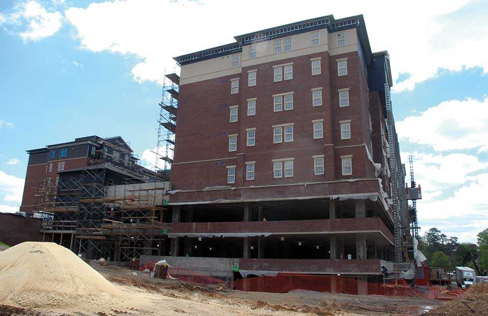 The building is an 8-story student dormitory and parking structure built on-campus for the University of Alabama in Tuscaloosa. In this building, the use of shrinkage-compensating concrete resulted in the elimination of pourstrips in large post-tensioned slabs with cost savings and excellent performance.
